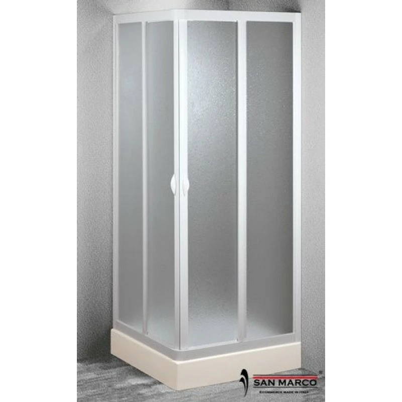 Box doccia ad angolo con profili in PVC e lastre di acrilico di spessore mm. 1,7 effetto canapa.