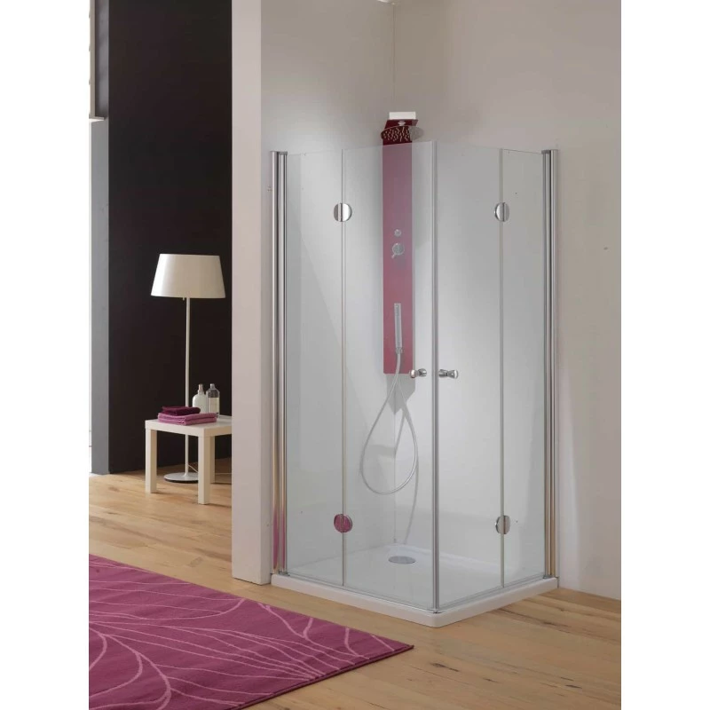 Nuovo box doccia con ante a libro con profilo in argento satinato e apertura verso l’interno. Unisce semplicità e design moderno.