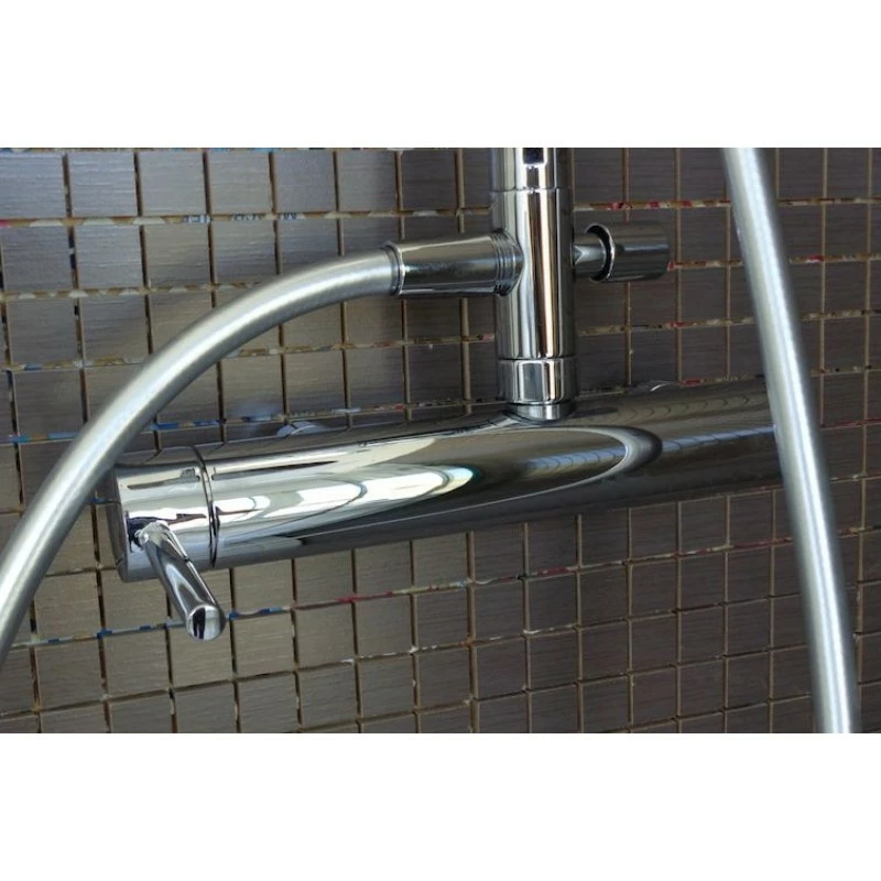 Doccione centrale effetto pioggia e doccetta estraibile e regolabile in altezza, entrambe con uscite anticalcare, incluso di miscelatore monocomando e tubo flessibile gommato effetto silver….da design.