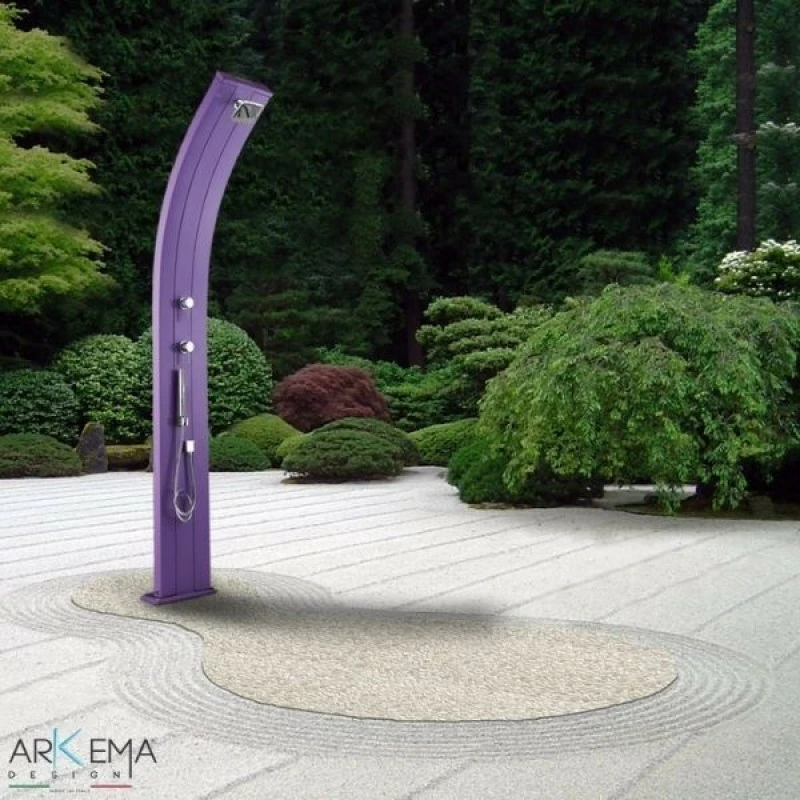 La doccia solare curva in alluminio Dada 340 è il prodotto TOP di gamma della linea Arkema, dal design innovativo e originale. Adatta per rinfrescare le lunghe giornate estive e perfetta per le strutture pubbliche e balneari.