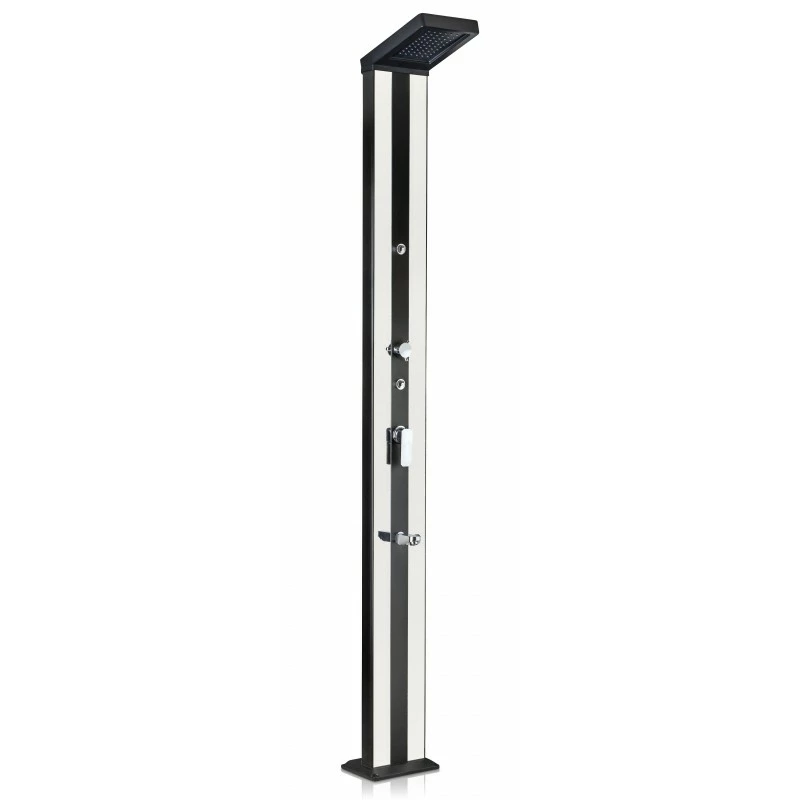 Le docce solari riscaldano l’acqua grazie all’energia solare e non consumano elettricità. Con la doccia solare da giardino di Gre potrete fare la doccia miscelando acqua calda fino ai 60° che è contenuta nella doccia solare, assieme a quella fredda proveniente dall’impianto idrico. Il miscelatore, di serie nelle nostre docce solari, vi permetterà di dosare sia la temperatura che il getto dell’acqua, rendendo così la vostra doccia confortevole e rilassante. È possibile installare questa doccia solare in giardino, in terrazza e accanto alla vostra piscina, l’unico requisito è che sia collegata tramite un tubo (uno comunissimo in gomma) all’impianto idrico.