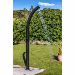 Per il montaggio della doccia solare sono necessarie 4 viti che permettono di ancorarla al terreno, su una lastra di legno o cemento. Una volta fissata, è sufficiente collegarla a un tubo da giardino convenzionale. Grazie all’ingresso collegato alla rete idrica mediate un semplice tubo, posto alla base della doccia, è possibile riempire il serbatoio interno.