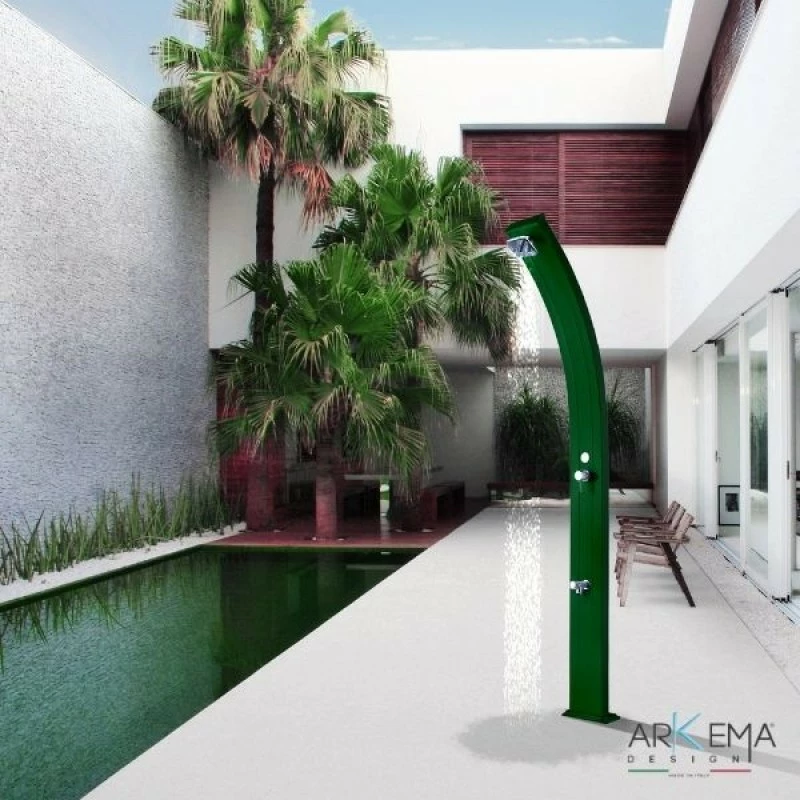 Caratteristiche doccia solare in alluminio Spring 120 Arkema 25 Lt con rubinetto lavapiedi