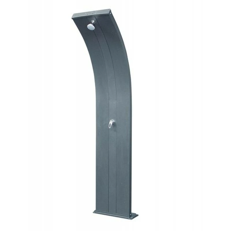 Viene fornita con una pratica base in alluminio che garantisce un’installazione ancora più semplice e sicura attraverso il fissaggio a pavimento con tasselli. Il particolare design della doccia è studiato per dare il massimo rendimento all’irradiazione solare grazie ad una minima dispersione per ventilazione.