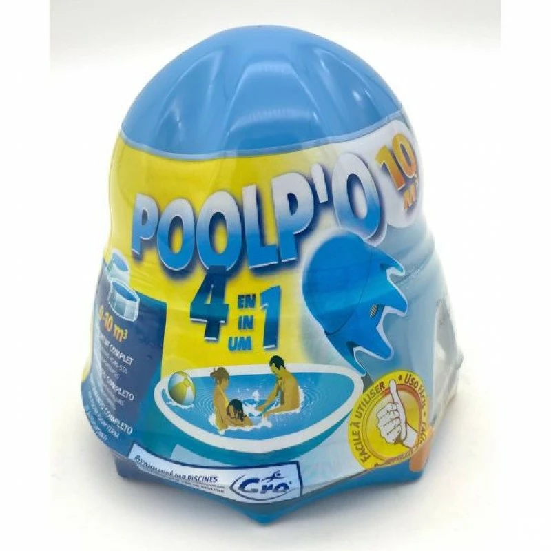 Poolp’o è l’innovativo sistema multiazione per la pulizia dell’acqua delle piscine fuori terra o autoportanti con e senza filtrazione, completo di 4 prodotti chimici da 250 gr in un unica soluzione: