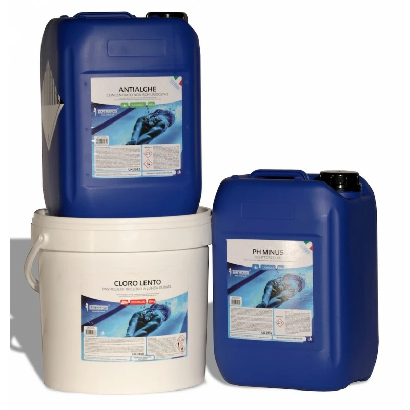 Caratteristiche kit antialghe, ph- e Cloro lento San Marco 30 Kg