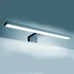 Larga 60 cm, questa lampada a LED è dotata di attacco a vite per applicarla sia su telaio che direttamente sullo specchio, 560 lumen ed irradia una gradevole luce da circa 4000 K.