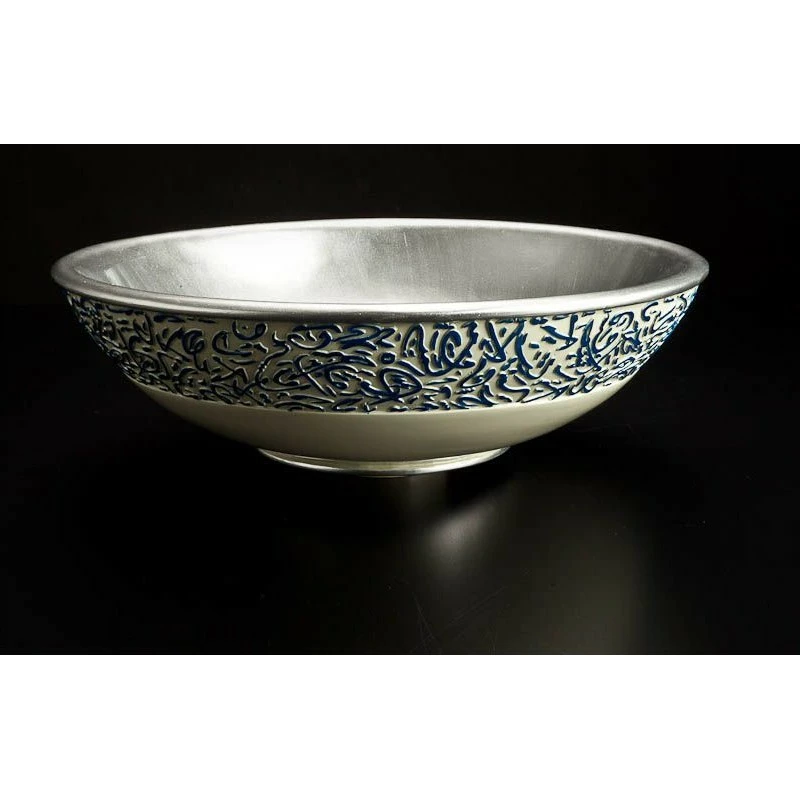 Il web store San Marco propone in vendita la linea d’arredo bagno online in stile etnico dedicata agli amanti dello stile ricercato. Questo lavabo bagno da appoggio è un’idea d’arredo elegante e originale che rende unica la sala bagno: è in resina con fondo argento e fascia dorata, le lettere arabe a rilievo color blue majorelle ne completano la decorazione.