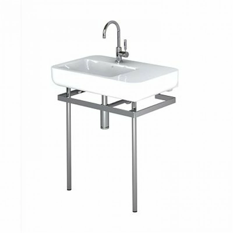 Lavabo in ceramica bianca con struttura in ottone cromato
