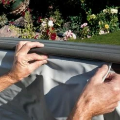 Il liner viene installato alle pareti della piscina attraverso il sistema beaded. Il liner nella sua estremità ha una fettuccina in pvc saldata sul bordo esterno che permetto al liner di essere appeso sul profilo superiore. Il vantaggio di questo sistema è dato dal fatto che non è necessario smontare il profilo superiore per la sostituzione del telo. Questo sistema offre durabilità e un design che ne semplifica l’applicazione.