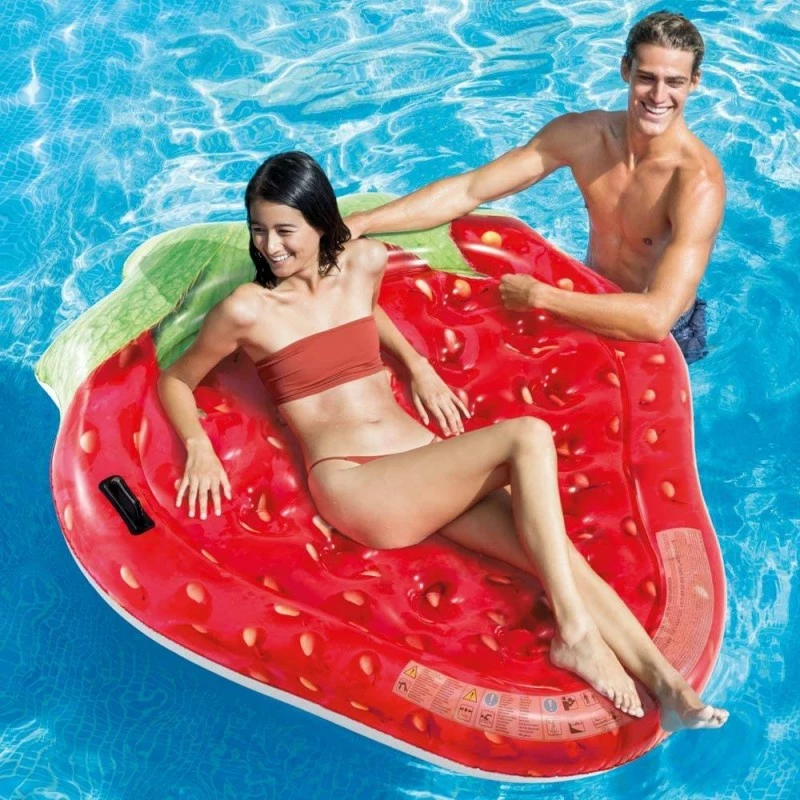 Il materassino a forma di fragola è perfetto per la tua estate! La stampa fotografica realistica ti farà credere di nuotare veramente a bordo di una fragola gigante. Il divertimento è assicurato per le tue vacanze.