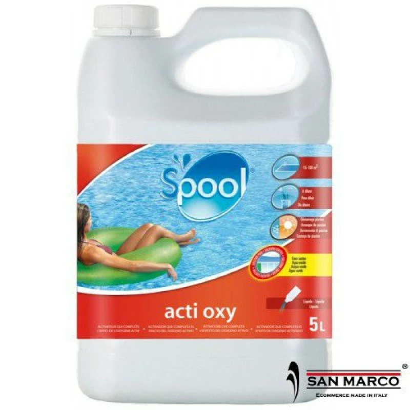 L’ossigeno attivo liquido Gre per piscine, disponibile nella confezione da 5 L è un prodotto chimico indicato