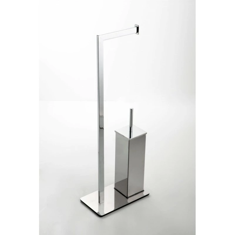 Piantana Wc combinata, elegante finitura cromata lucida e base minimal rettangolare