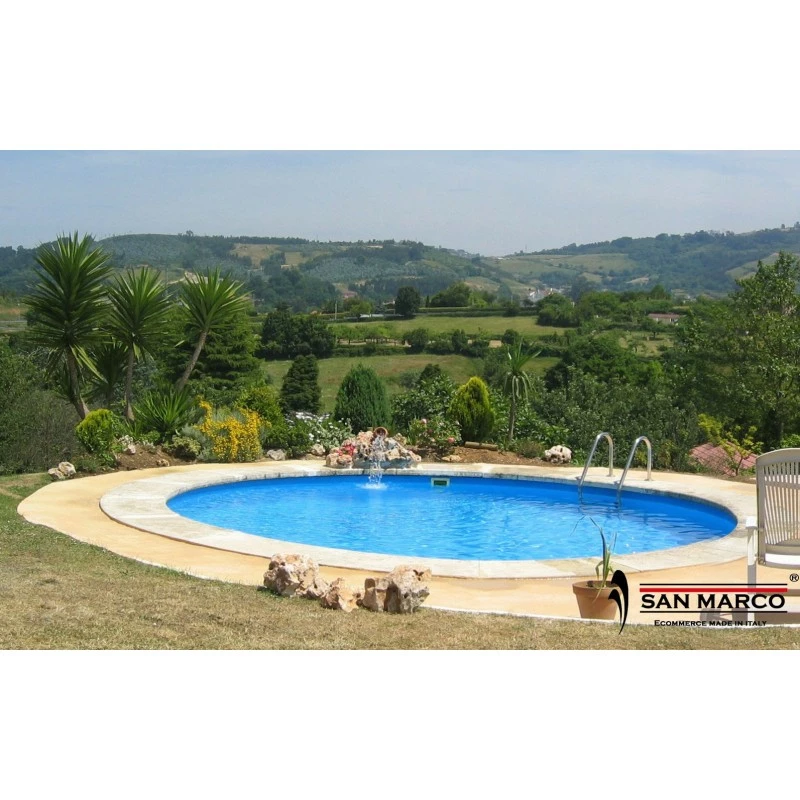 - Liner in PVC azzurro con trattamento antinvecchiamento e anti raggi UV;