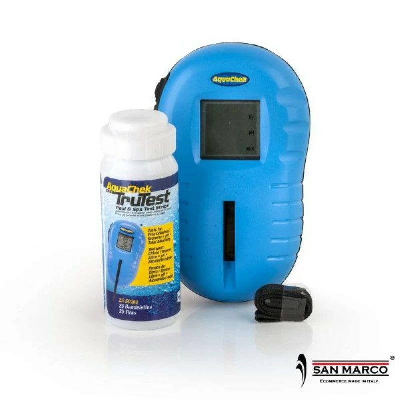 Grazie alla striscia lettore True Test, questo misuratore digitale analizza correttamente i livelli e i valori di cloro o bromo libero, pH e l’alcalinità totale.