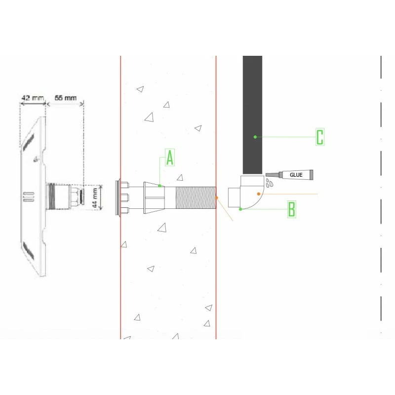 Lo stesso faro led può essere montato su piscine in lamierato fuori terra ma necessita del passante a muro per piscine con liner.