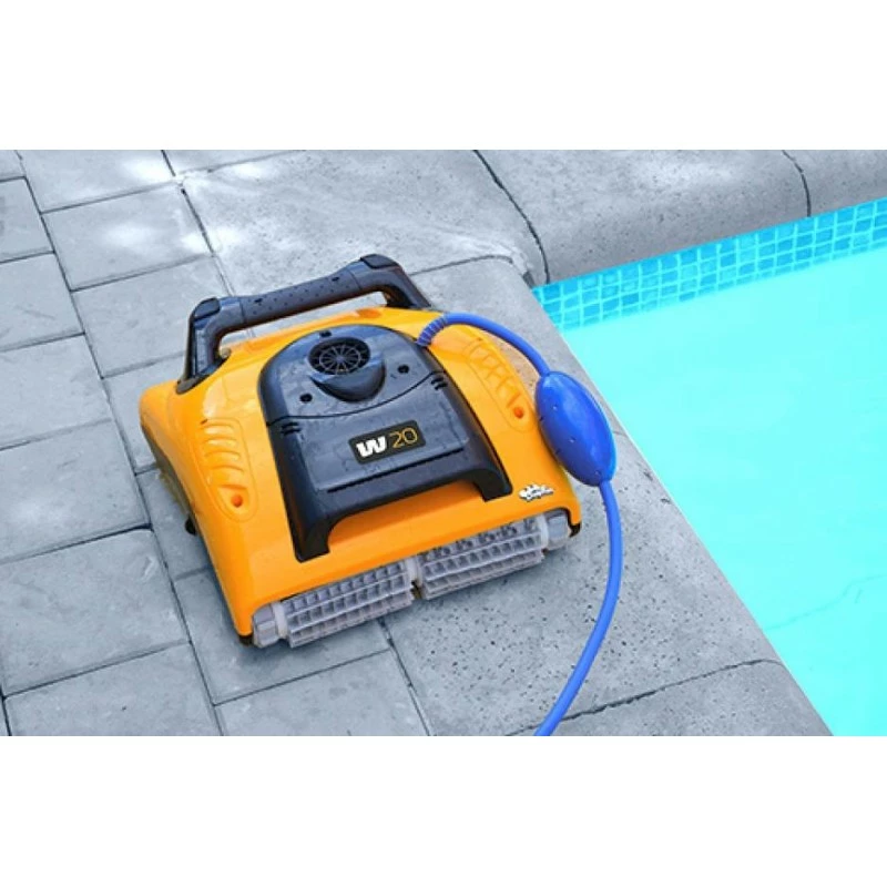 Dolphin W20 Digital è il modello di robot ideale per pulire il fondo ed i primi 40 cm delle pareti di piscine tradizionali, spiaggette, fontane, vasche con profondità minima.