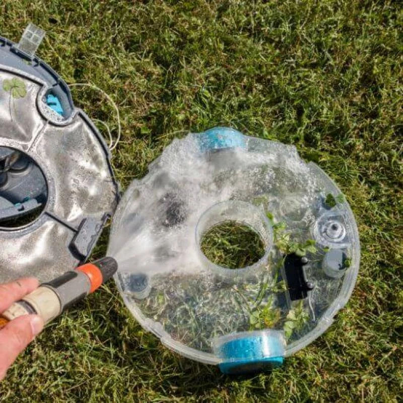 Completata la rimozione di detriti e impurità presenti nell’acqua della piscina, sarà possibile estrarre il puliscifondo elettrico Wet Runner grazie al gancio di recupero, posto sulla parte superiore del robot. Una volta estratto è possibile rimuovere il filtro, sciacquarlo accuratamente con acqua eliminando i residui di sporco e successivamente ricomporlo per una seconda operazione.