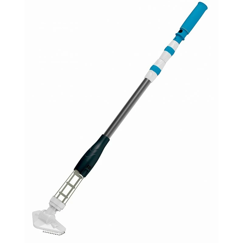 Il pulitore elettrico per piscina fuori terra funziona con batteria e senza la necessità di essere collegato a presa elettrica durante l’uso. Con una ricarica completa, ha autonomia che può variare dai 70 fino a 90 minuti. Inoltre, il pulitore fondo piscina ricaricabile è dotato di un’asta regolabile in alluminio, una testa triangolare che permette di raggiungere i punti più difficili e un tasto d’avvio impermeabile per maggiore sicurezza in fase di immersione (il manico dell’impugnatura non deve comunque essere immerso in acqua).