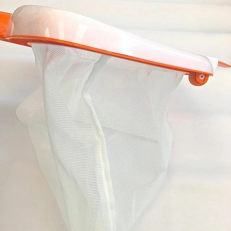 Sempre nella parte inferiore sono presenti 2 rotelline che vi consentono di appoggiare il retino sul fondo della piscina in modo da effettuare una pulizia della piscina più corretta ed in tal caso la linguetta morbida agevolerà l’ingresso delle impurità all’interno del contenitore in nylon.