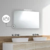 Set di accessori bagno con bicchiere, dispenser, portasapone e scopino.
