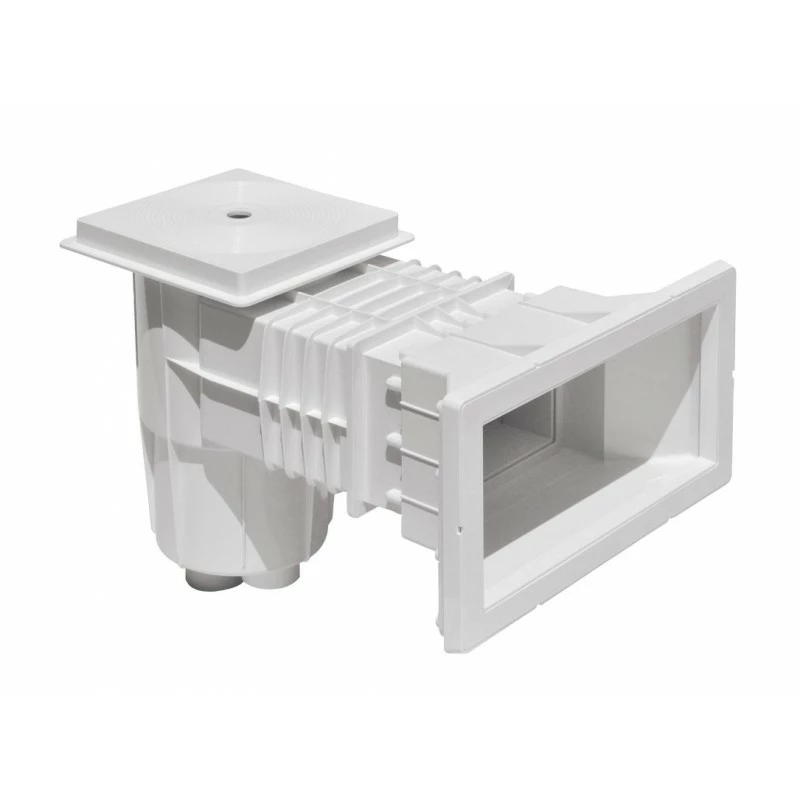 Skimmer a bocca svasata per l’aspirazione superficiale, permette la pulizia de pelo d’acqua, caratterizzato da bocca a parete attraversata dall’acqua