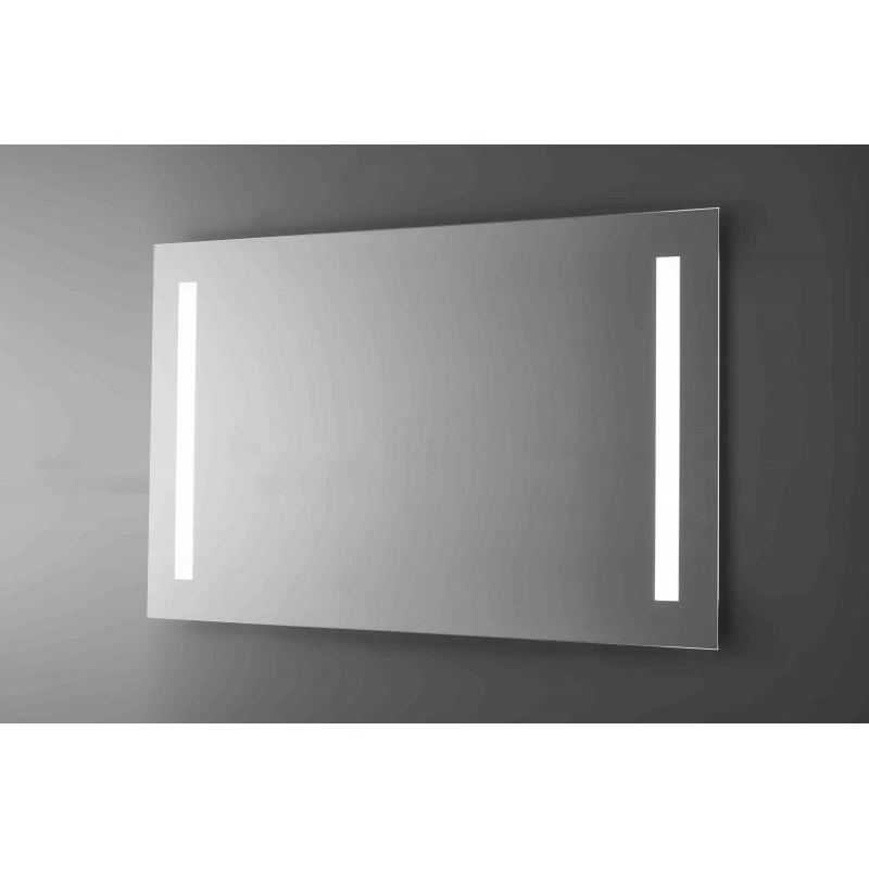 Specchio da bagno retroilluminato a led da 25 Watt (pari a 4200 lumen di luminosità) con perimetro a filo lucido e due sabbiature frontali. Questo specchio a led da 110×80 cm, prodotto in Italia, è reversibile cioè può essere fissato sia in verticale che in orizzontale ed è montato su un telaio perimetrale arretrato, rispetto a quello esterno.