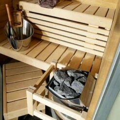 Questo sistema di riscaldamento da 4,5 kW grazie alle sue dimensioni ridotte permette facilmente di posizionarsi nella parte inferiore della sauna. Ciò garantisce che il calore si propaghi anche alle panche poste vicino alla stufa Harvia.