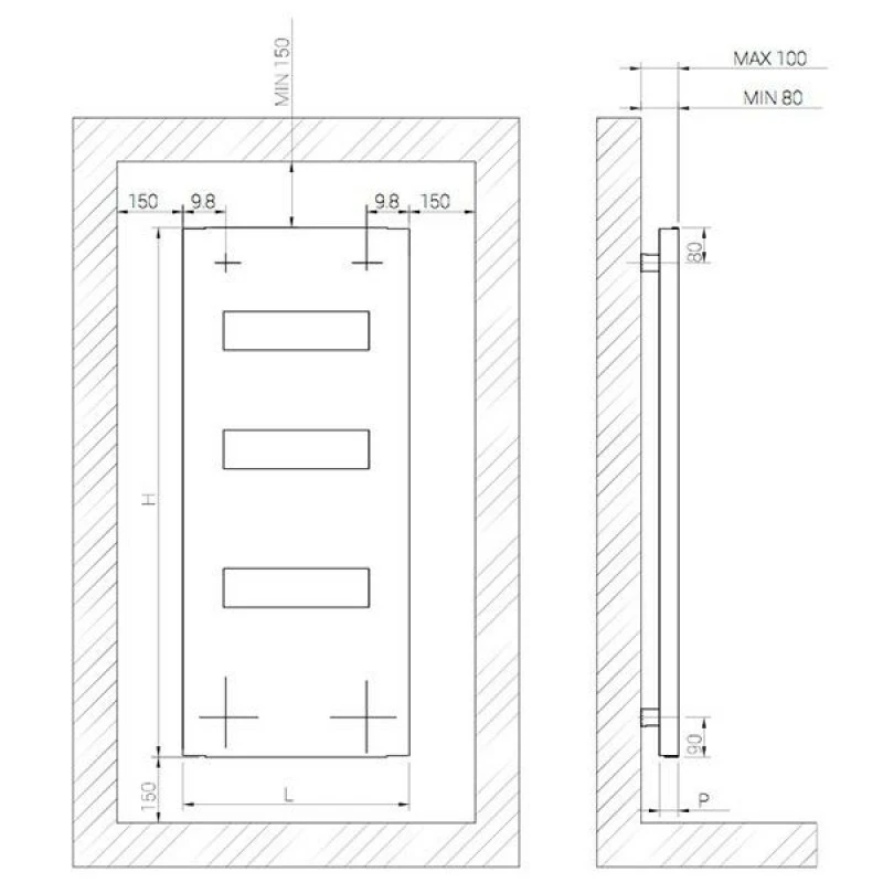 - fissaggio con distanza dal muro regolabile
