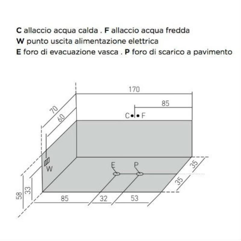 Vasca da bagno rettangolare made in Italy color bianco 170×170 cm